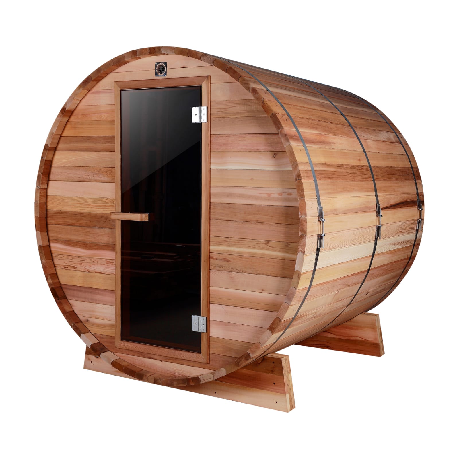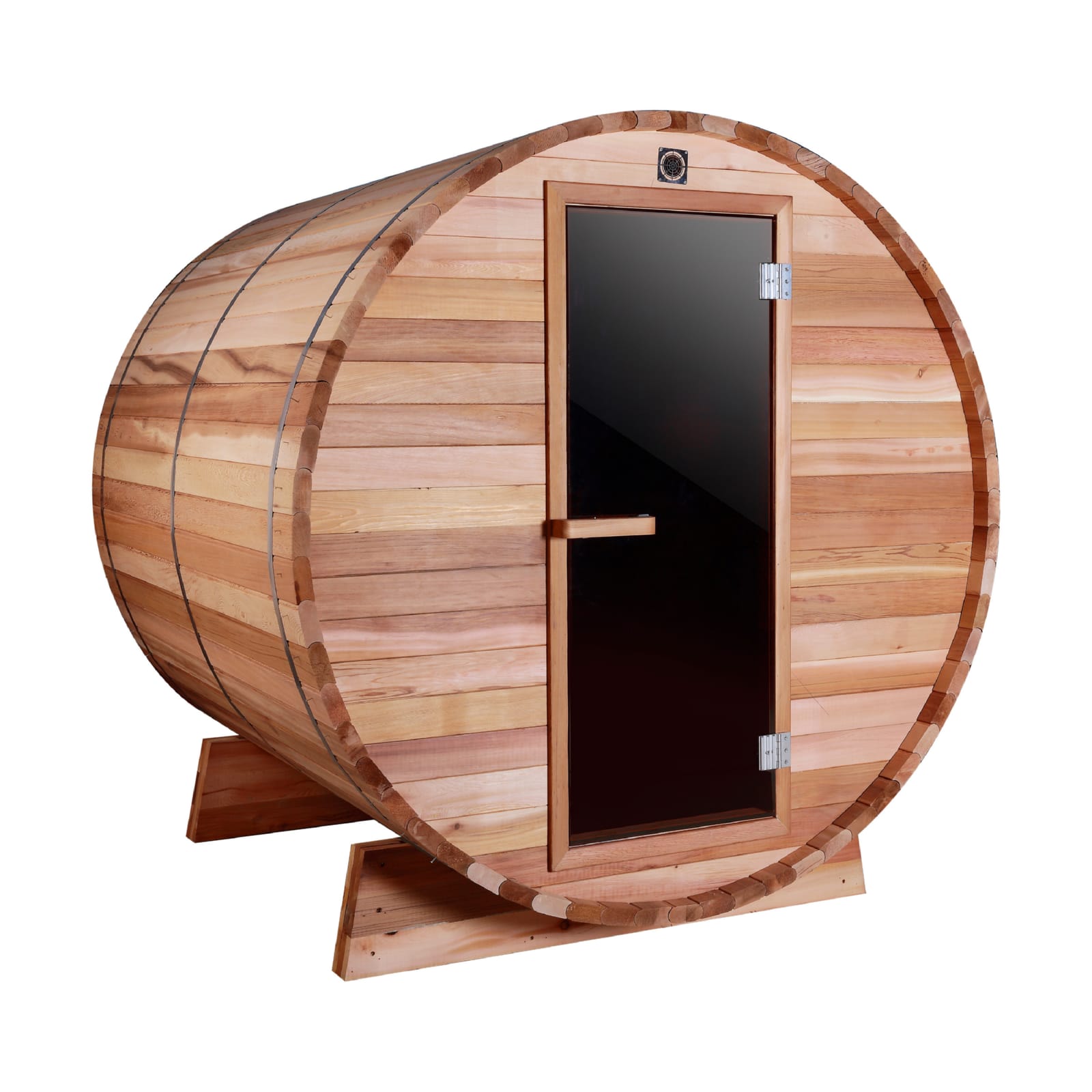 - Comparing to usual square sauna room, ?there is 23% less area to heat with a circular design compared to the same size box style sauna, in addition, the heat is naturally pushed back down the sides of the curved walls providing more heat lower into the sauna as heat wave reach to the top part, which causes the barrel sauna heat much faster and save more energy.