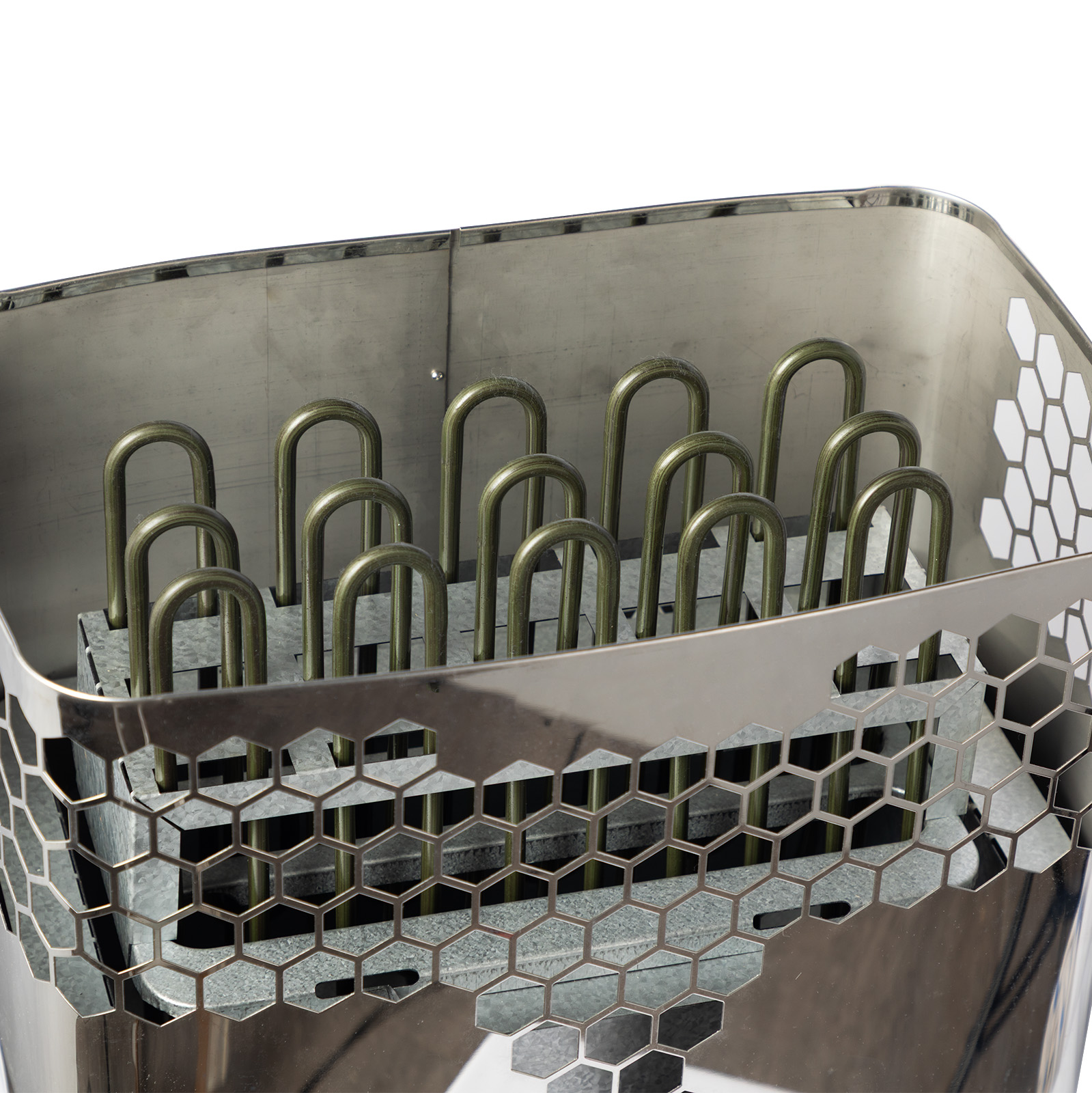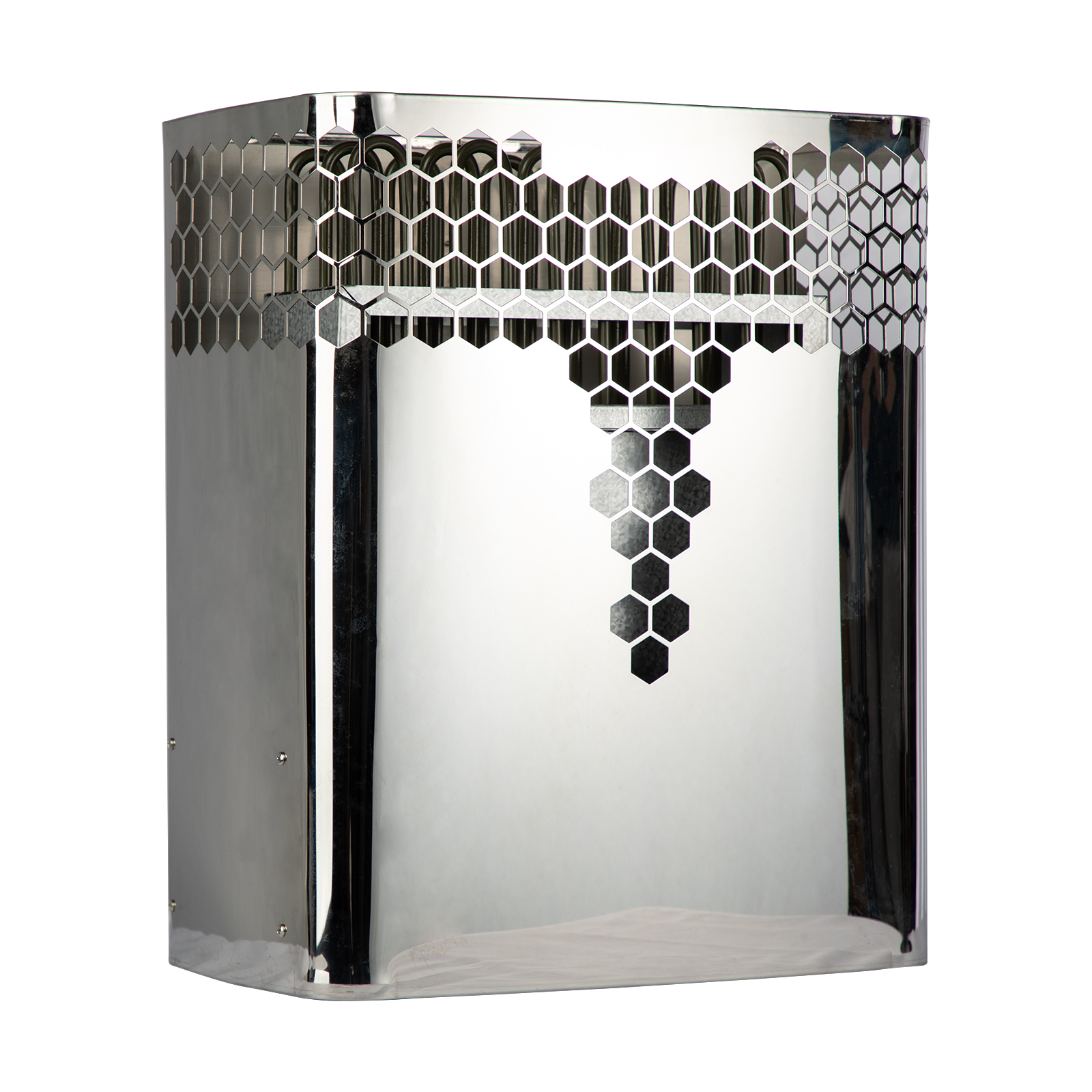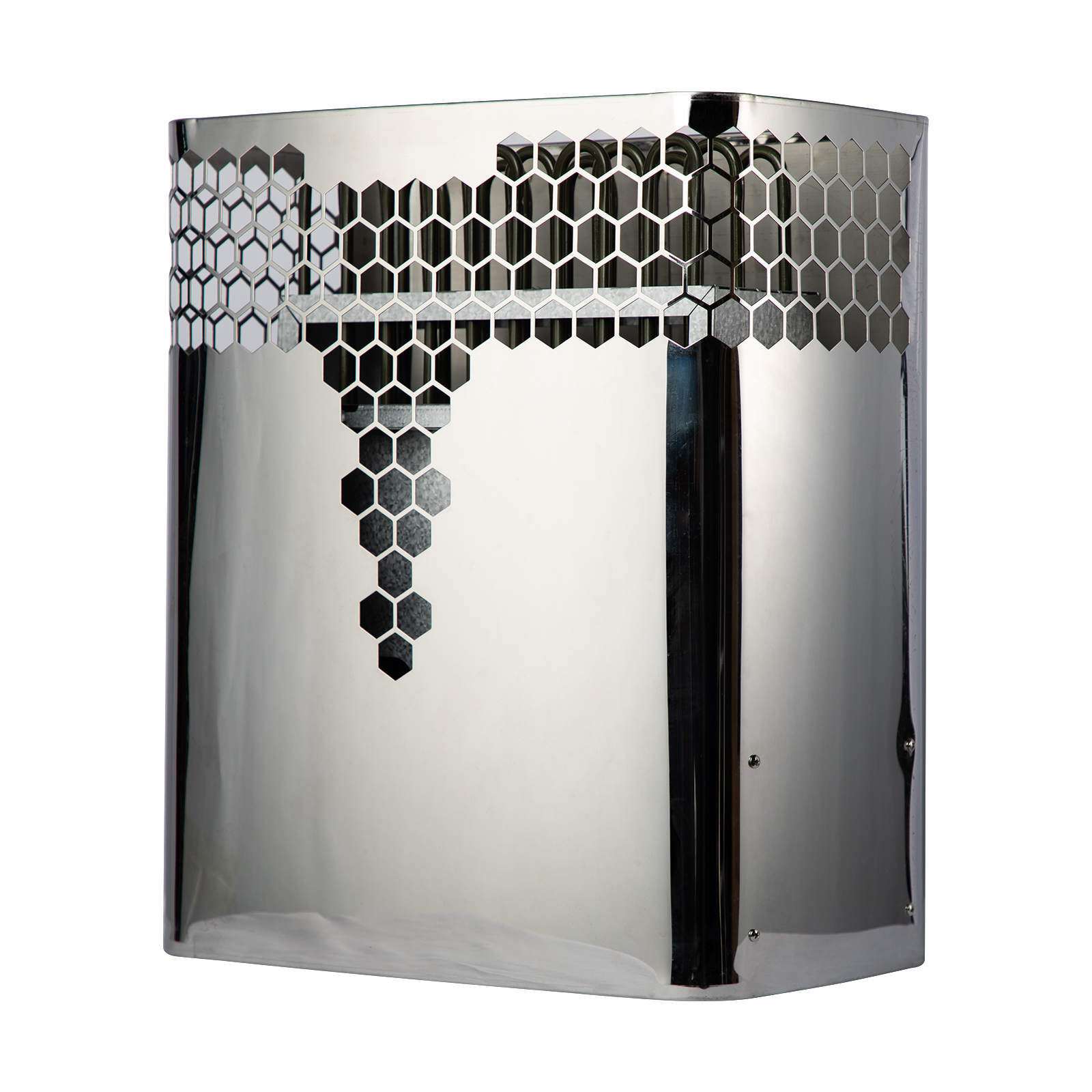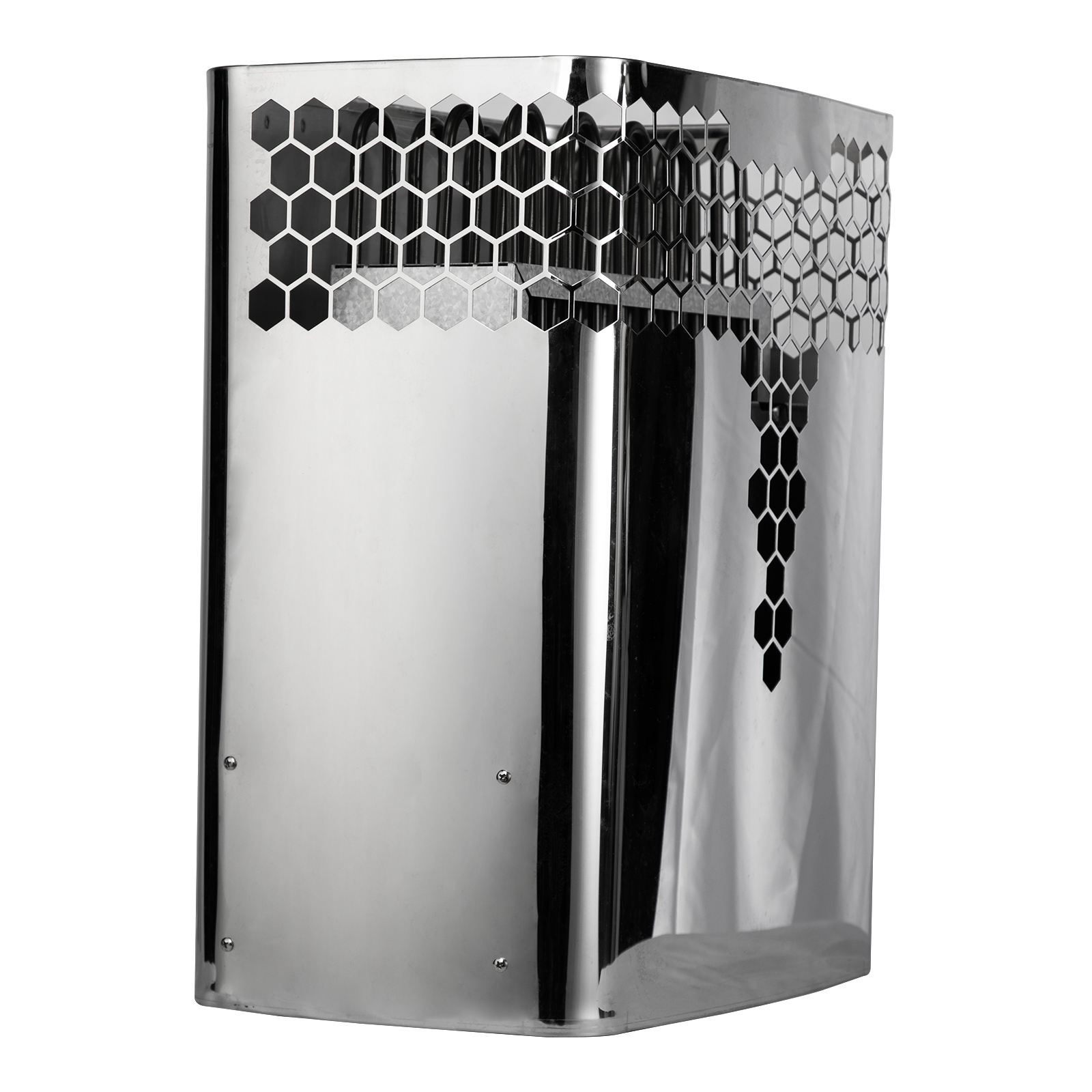 Exceptionally efficient air-circulation system which warms up the heater and the sauna quickly while producing an even temperature. Firm body design ensure the heater not expand or distort under heavy duty workload. Special Heat Deflector with Teflon coating directs the heat towards interior of room.
