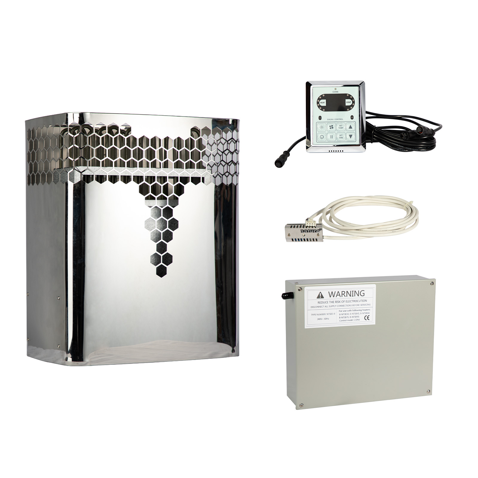 The heater comes with a dedicated electrical box for all the big components and wiring, which make slim digital control panel become possible. The sauna heater inside the sauna heater also becomes more reliable and moisture-proof.