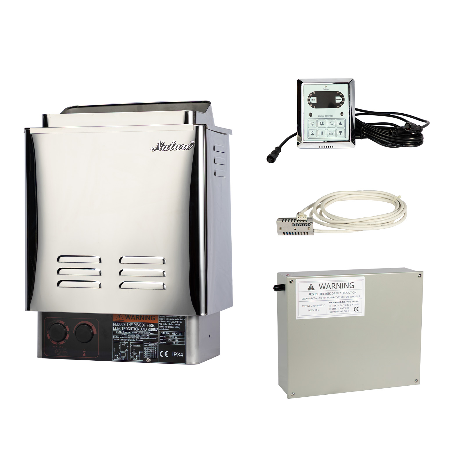 The temperature is regulated by the build-in thermostat, however if unexpected high temperature occurs, the High-Temperature protection device will cut off power supply of heater to give you maximum level of protection. You could manually reset the heater after temperature drops to normal level. The Nature sauna heater is designed to comply with local safety code and standard for US and Canada, where the protection circuit will cut off both fire wires when emergency happens.5. Updated DIGITAL temperature sensor.